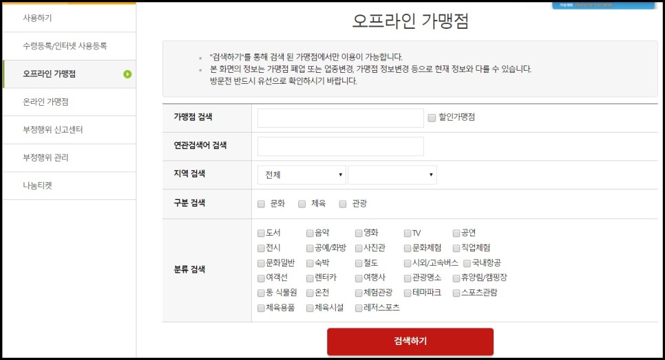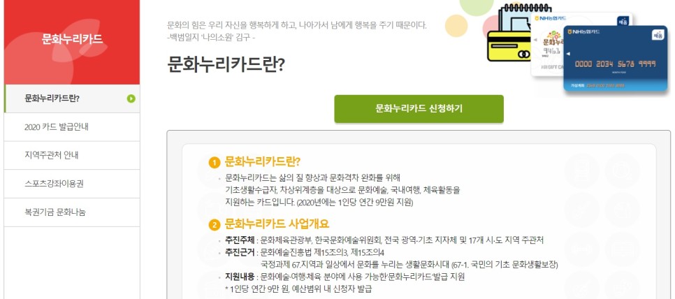 홈페이지에서 사용하기에 들어가주세요 크게는 문화/여행/체육으로 나뉘어집니다 도서나 공연과 영상, 미술, 체험, 관광지, 숙박, 체육시설 등 다양하게 누리실 수 있습니다 생각보다 여러가지 방면으로 활용하실 수 있답니다 그리고 반드시 반드시!! 등록된 가맹점에서만 결제가 가능합니다 그리고 현금으로 전환하실 수 없습니다