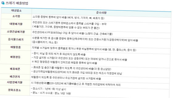 쓰레기 배출방법과 규격봉투의 판매가격,