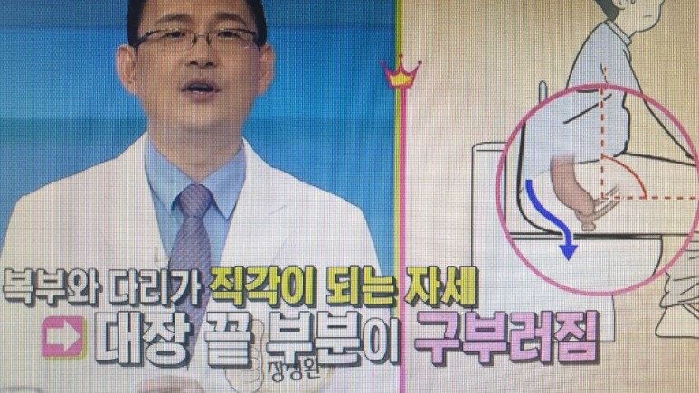 보통은 복부와 다리가 직각이되는자세이지만 배변자세로는