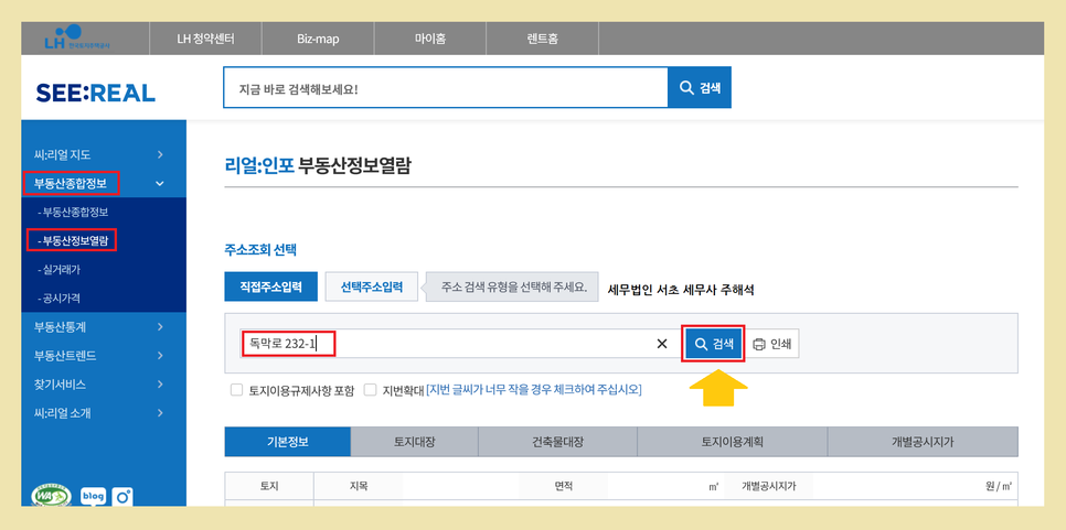 여기서는 지금 말하는 개별공시지가 외에도 다양한 부동산 관련 정보를 제공하니 한 번 둘러보고 활용해보시는걸 추천드립니다.