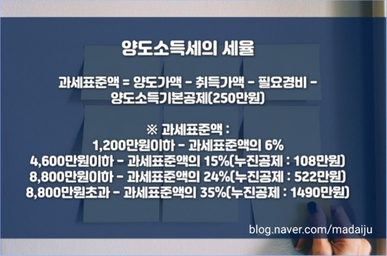 세율도 기본 양도세율에 10%(3주택 이상자는 20%)를 추가로 과세받게 됩니다.