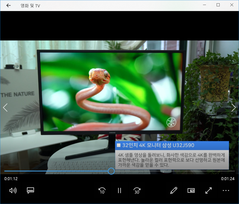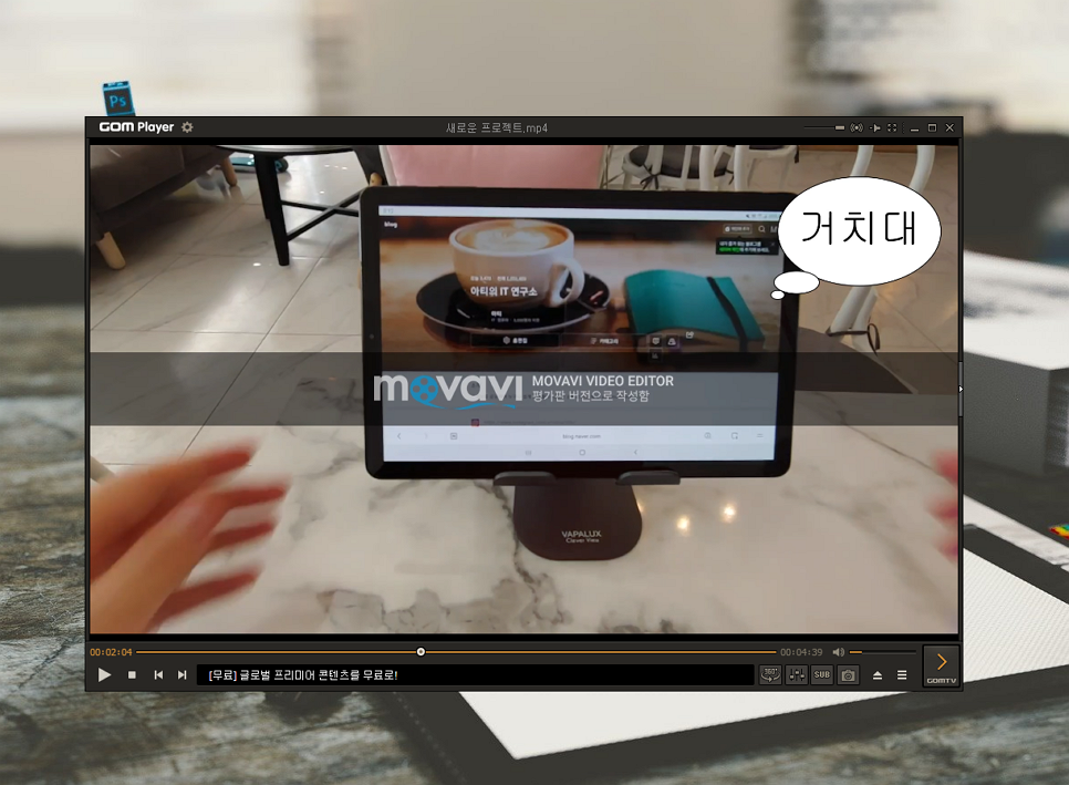 이 화면은 자막과 필터가 적용된 장면, 그리고 오른쪽 상단에 작은 영상이 PIP 추가된 것입니다. PIP 영상은 크기를 조절할 수 있습니다. 그리고 화면 모자이크 역시 지원하고요. 기초적인 효과는 대부분 지원한다고 보면 됩니다.