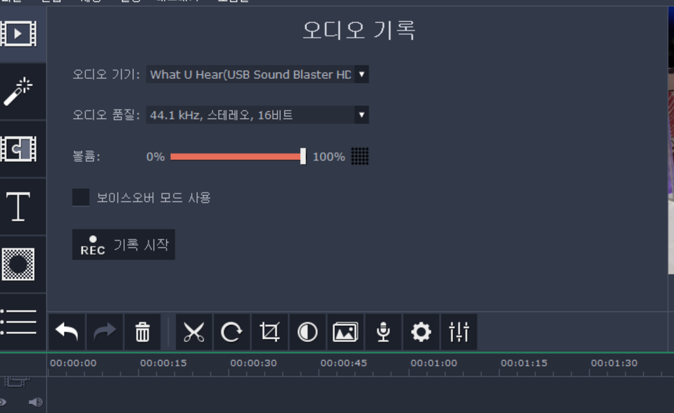 비디오/오디오/사진/데이터/기타/사용설명서 등의 메인 메뉴가 있습니다. 주로 사용하는 영역은 비디오 편집과 컴퓨터 스크린 기록입니다. 컴퓨터 스크린 기록은 반디캠처럼 화면을 녹화하거나 움짤을 만들어주는 프로그램으로 생각하면 됩니다.
