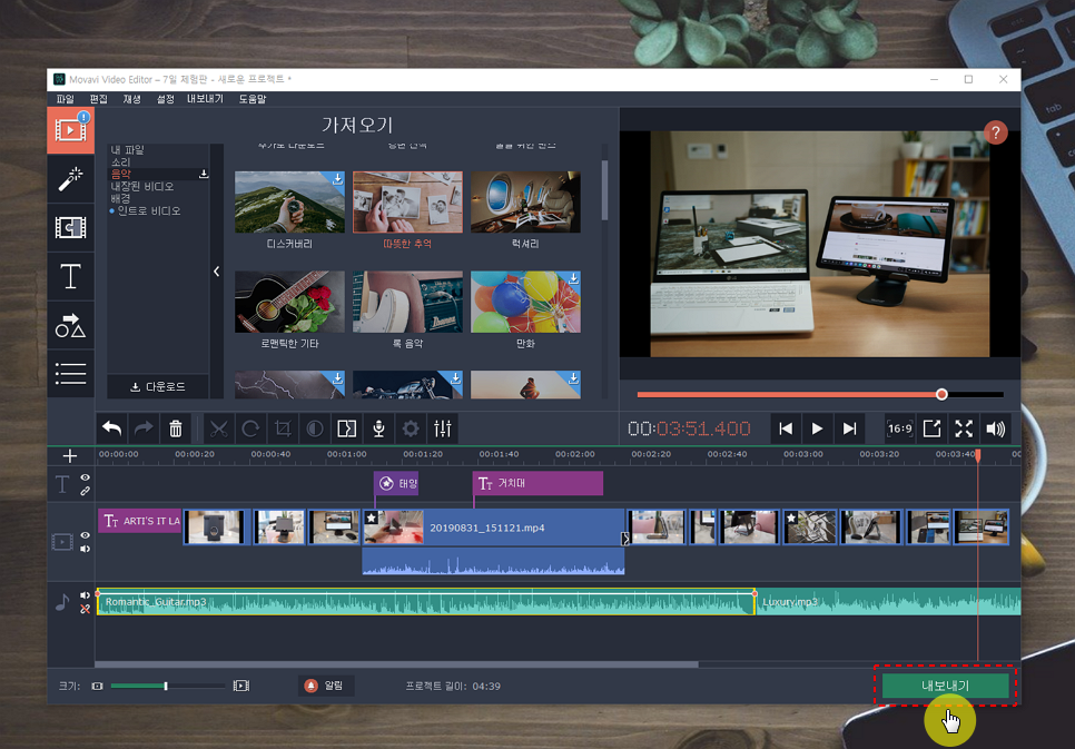 영상 편집 프로그램 Movavi에서 유튜브에 추가할 소리나 음악은 어떻게 넣을 수 있을까요? 가져오기 항목에서 소리 나 음악은 추가할 수 있는데, 내 컴퓨터에 저장된 음악이나 직접 녹음한 내레이션을 넣을 수도 있으며 모바비에서 제공하는 파일을 쓸 수도 있습니다.