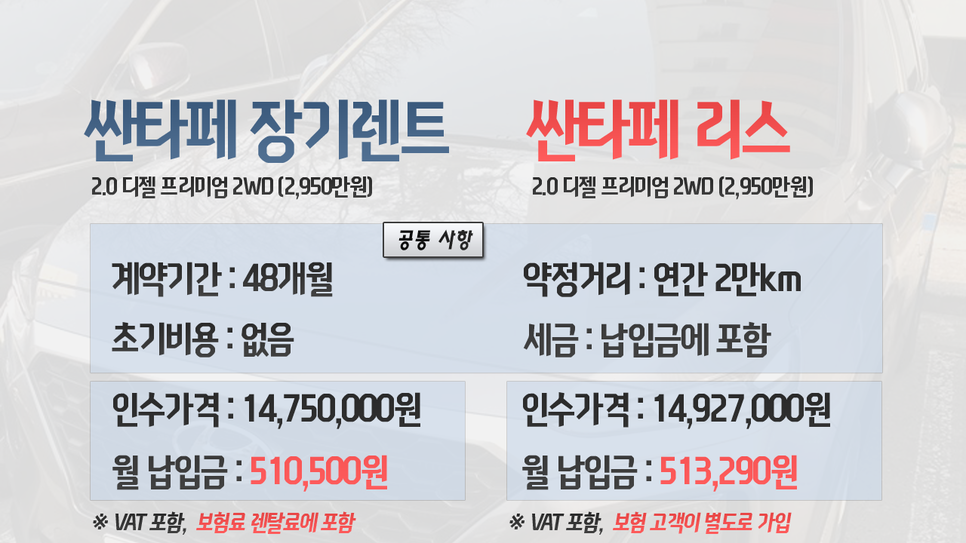 싼타페 장기렌트 vs 리스