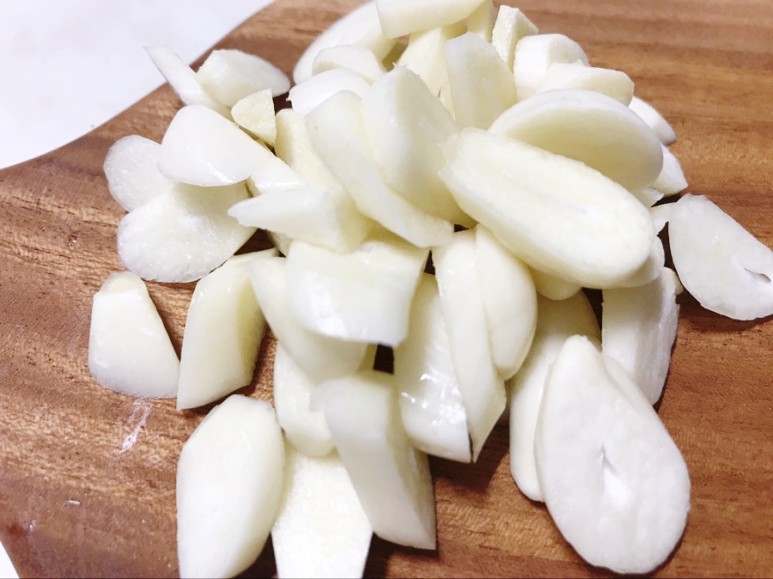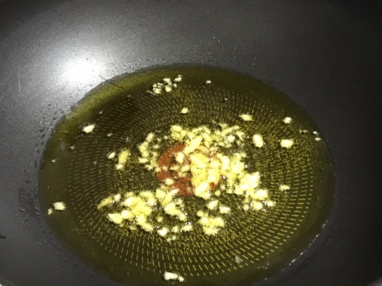 올리브오일을 가열하지 않은 후라이팬에 전부 넣어요. 마늘 두개를 다져서 올리브오일에 넣어둡니다. 왜냐하면 올리브오일에 마늘 향을 더욱 깊이 배도록! 잘게 다질 수록 마늘향이 깊어집니다.