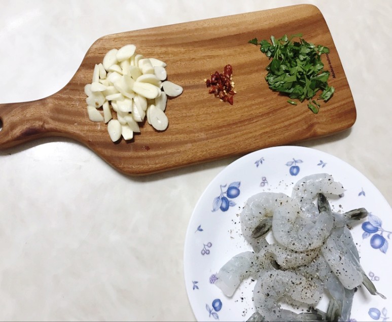 흐르는 물에 생를 깨끗이 씻고 새우의 물기를 키친타올로 완전히 제거 한 다음 소금과 후추로 밑간을 해요. 새우는 기본적으로 소금간이 되어 있는 상태이니 소금은 한 꼬집 정도만 뿌려주시면 됩니다. 후추는 기호에 맞게 양을 조절해서 뿌려주세요.