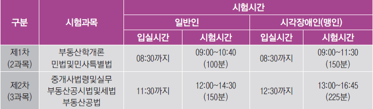 2차과목 : 공인중개사법령 및 실무, 부동산공시법, 부동산세법, 부동산공법