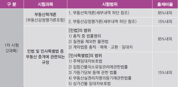 1차과목 : 부동산학개론, 민법 및 민사특별법