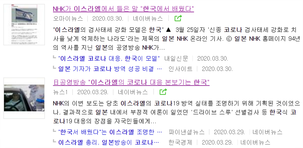 얼마 전 뉴스에서 보도된 NHK에서 가까운 우리나라의 코로나 대응은 애써 무시하고 굳이 멀리 이스라엘까지 날라가 코로나 대응에 성공한 원인을 취재해보니 이스라엘에서 이야기해 준 건 우리나라 대응법을 따라 했다는 내용을 보면서 일본의 안타까운 행보가 많이 느껴졌어요;;