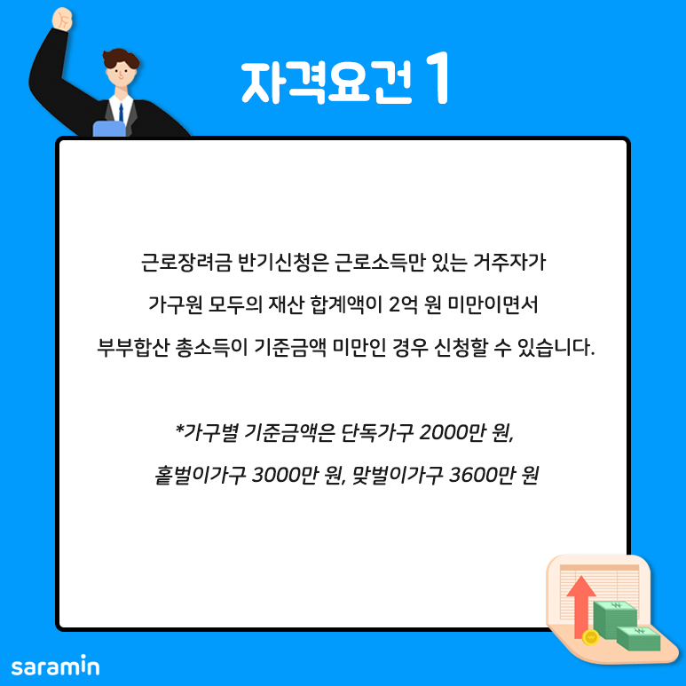 근로장려금 반기신청은 근로소득만 있는 거주자가 가구원 모두의 재산 합