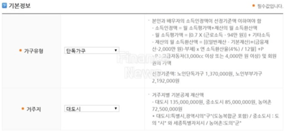 - 소득, 재산 기준선 (선정 기준액)