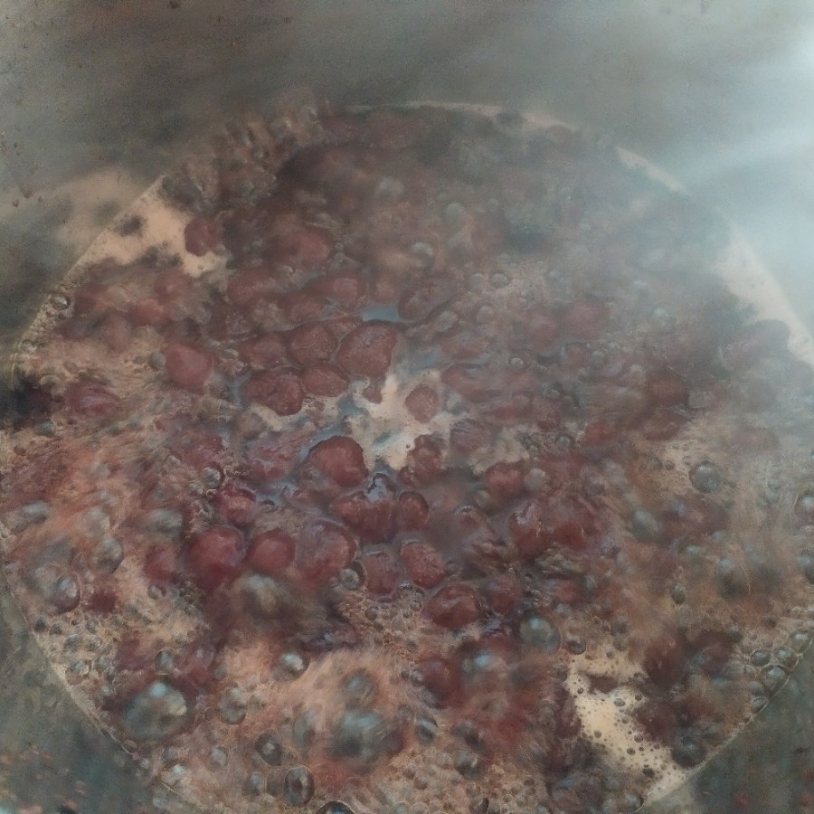 4. 설탕에 절인 딸기가 반 정도로 줄어들면, 설탕 200g을 더 넣는다.