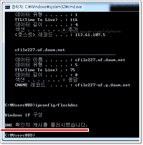ipconfig/flushdns 명령어를 입력후 엔터!!!