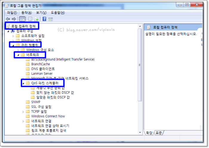 로컬컴퓨터정책 - 관리템플릿 - 네트워크 - Qos 패킷 스케쥴러.